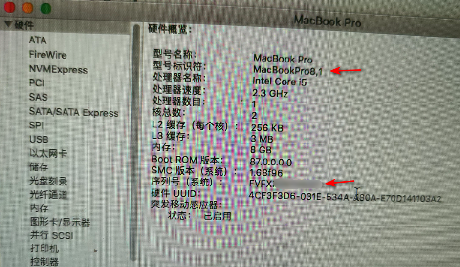 👉 “序列号”(如MFFVFX12345678)- 根据 型号标识 与 序列号 在 https://everymac.com/ultimate-mac-lookup/ 输入序列号 查询对应的具体型号。