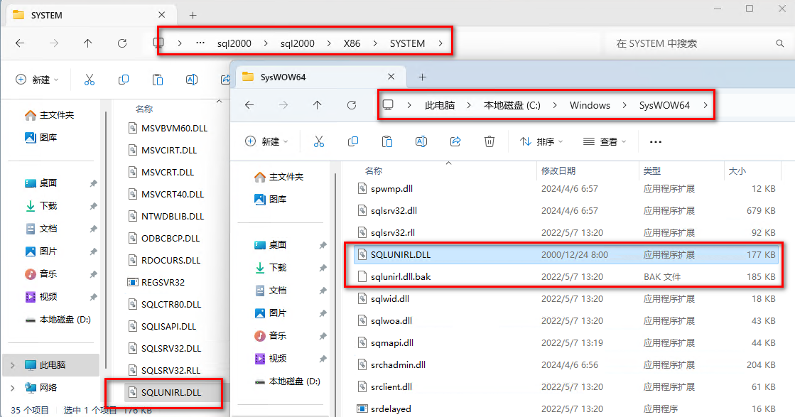 更换回旧的SQLUNIRL.DLL:将SQL Server 安装程序/X86/SYSTEM/SQLUNIRL.DLL 替换到Win10 的 C:/windows/system32 目录下(如果是Win10 X64,则替换到C:/Windows/SysWOW64)。