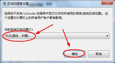 3、在当前系统区域设置 里面 改成 “中文(简体,中国)”,然后确定重启即可。